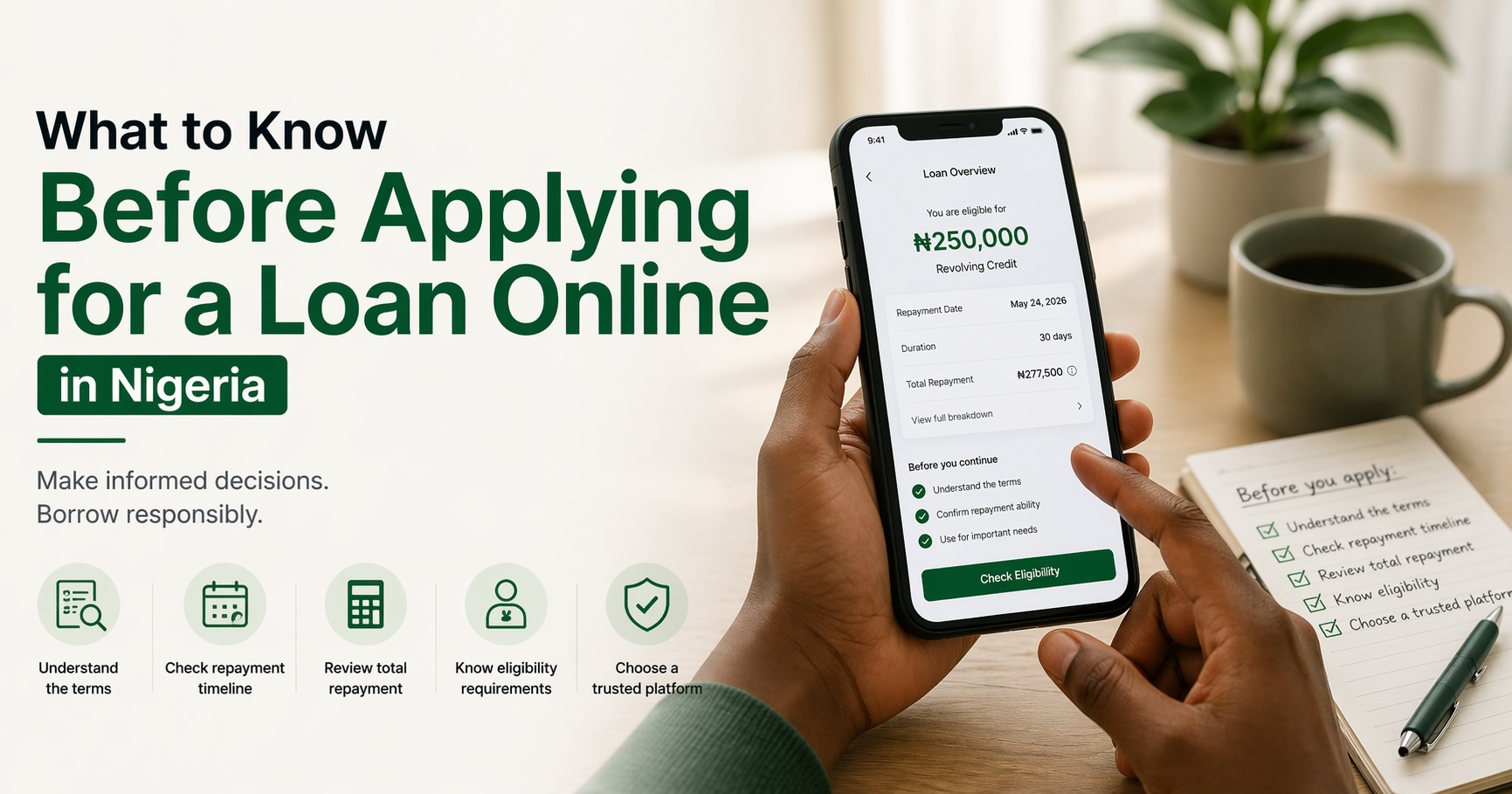 Before applying for a loan online in Nigeria, it helps to understand repayment terms, total repayment, eligibility checks, and how to choose a lending platform.