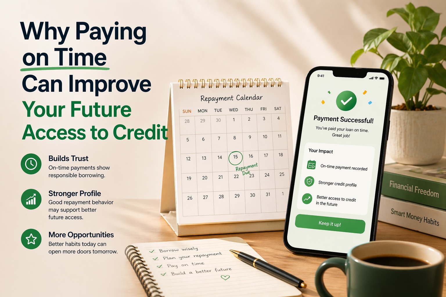 Paying on time is one of the clearest signs of responsible borrowing and may help support better future access to credit over time.